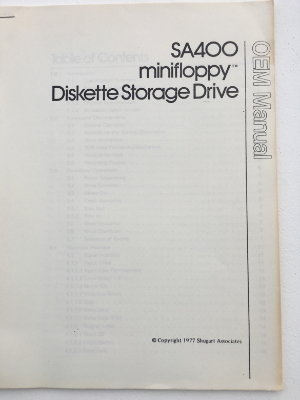 Shugart SA40 minifloppy Diskette Drrive OEM Manual