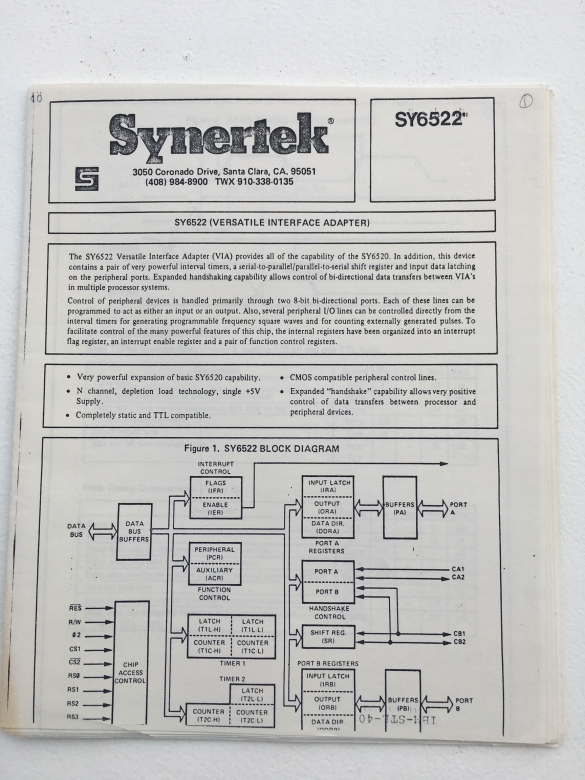 Synertek SY6522(Versatile Interface Adapter) specs