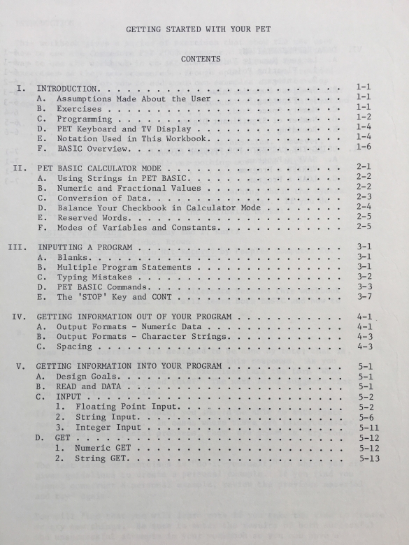 TIS 'Getting Started with Your PET' Workbook1 toc