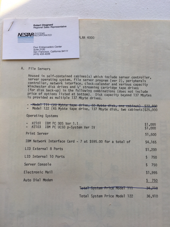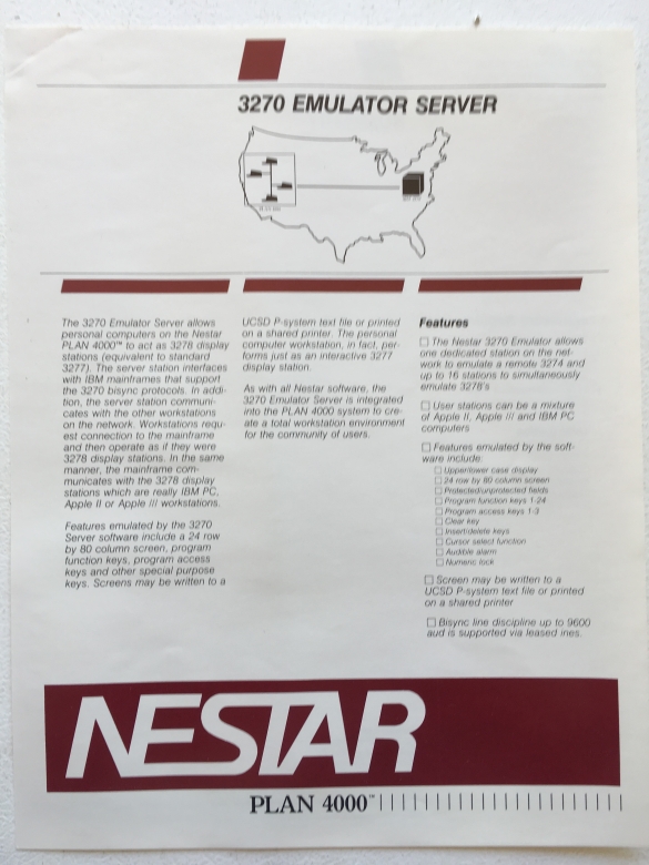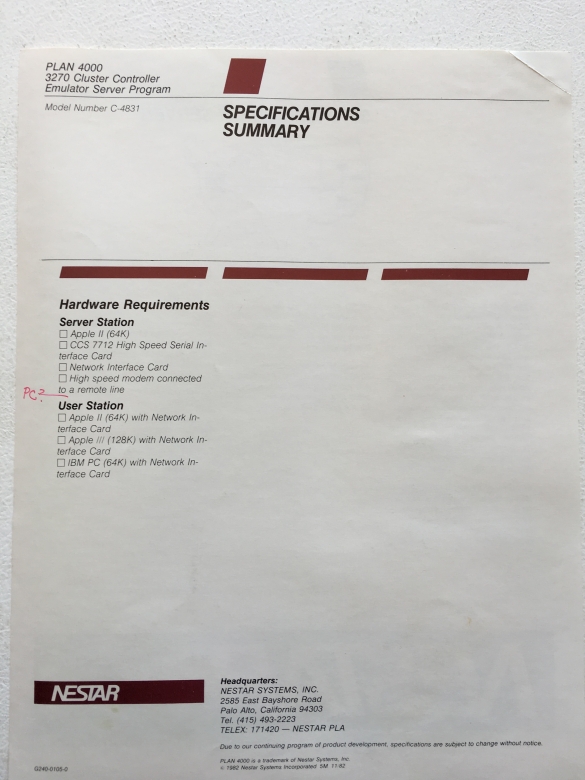 Nestar Plan 4000 3270 Cluster Controller Spec Summary