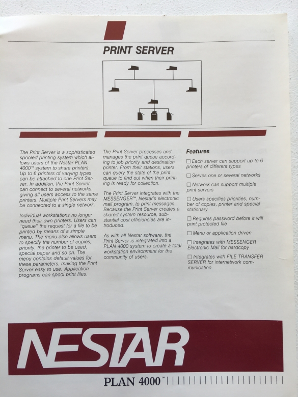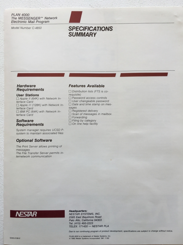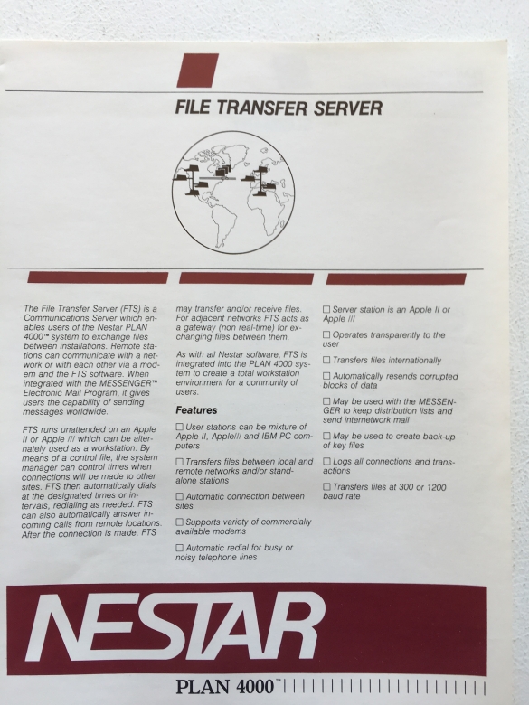 Nestar Plan 4000 File Transfer Server Spec Summary