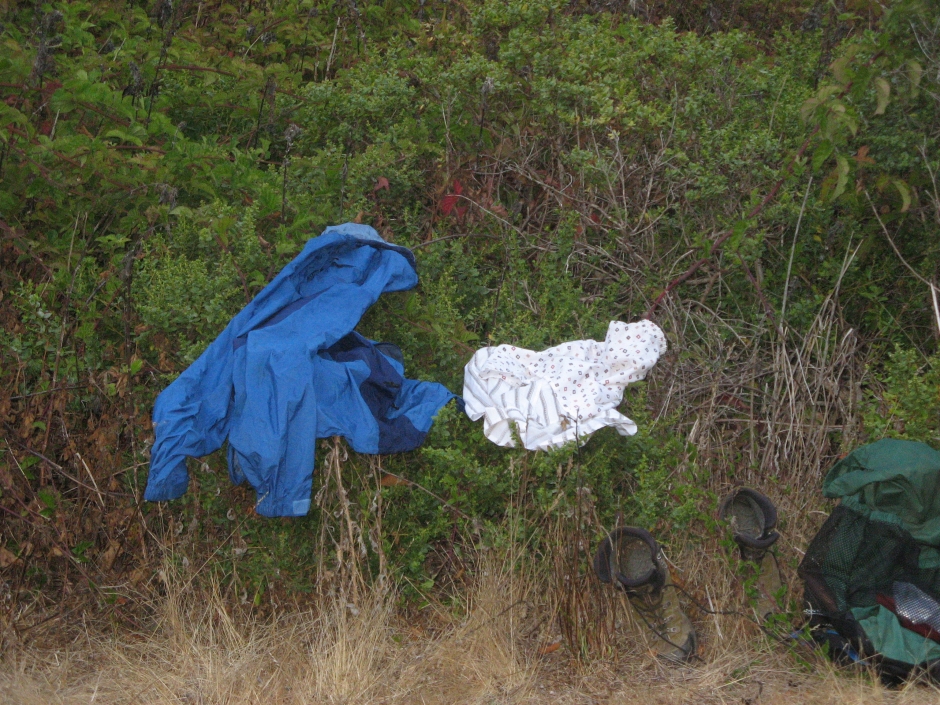 32 Tom drying clothes and boots.