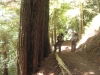 29 Admiring large redwood tree.